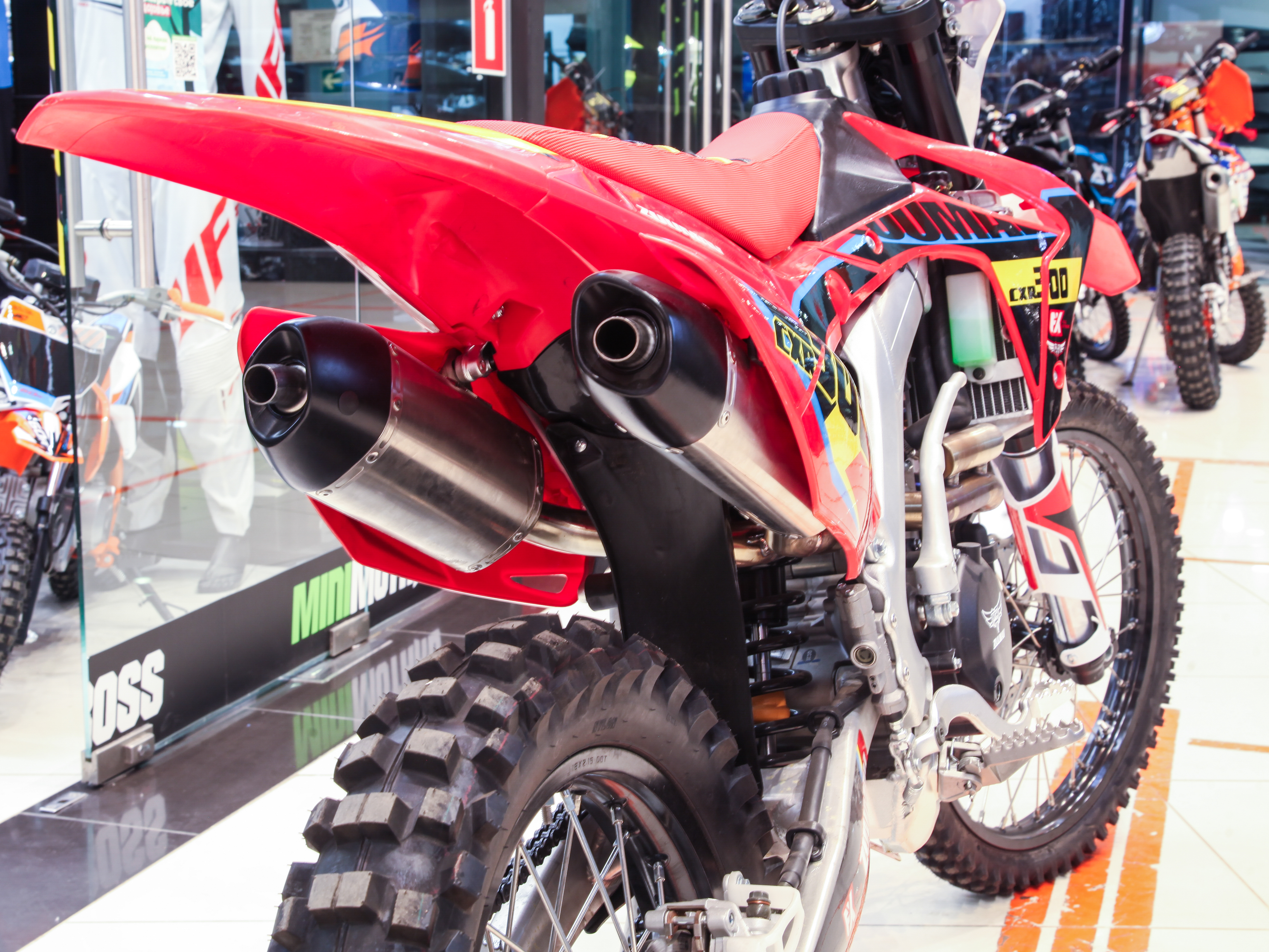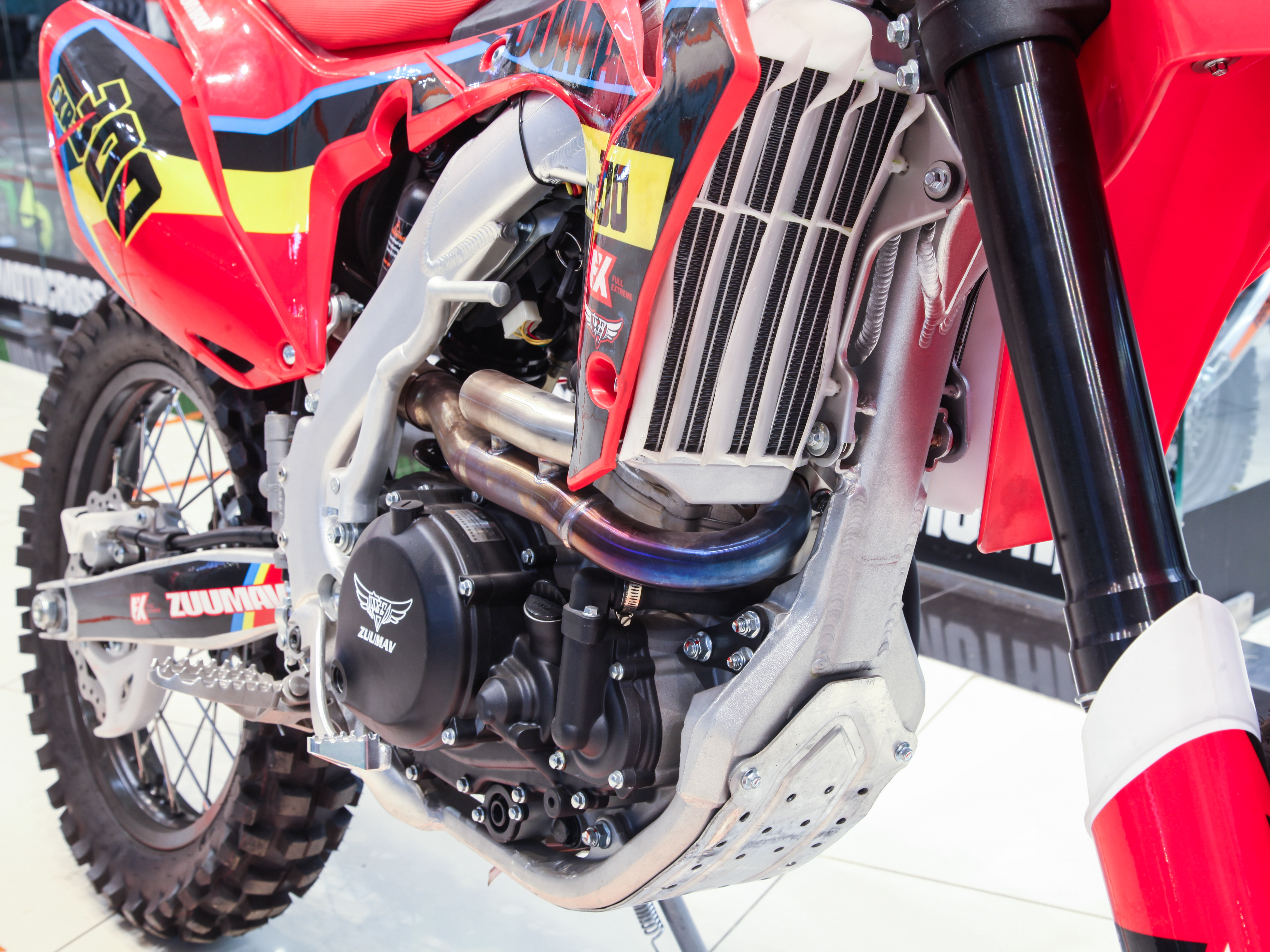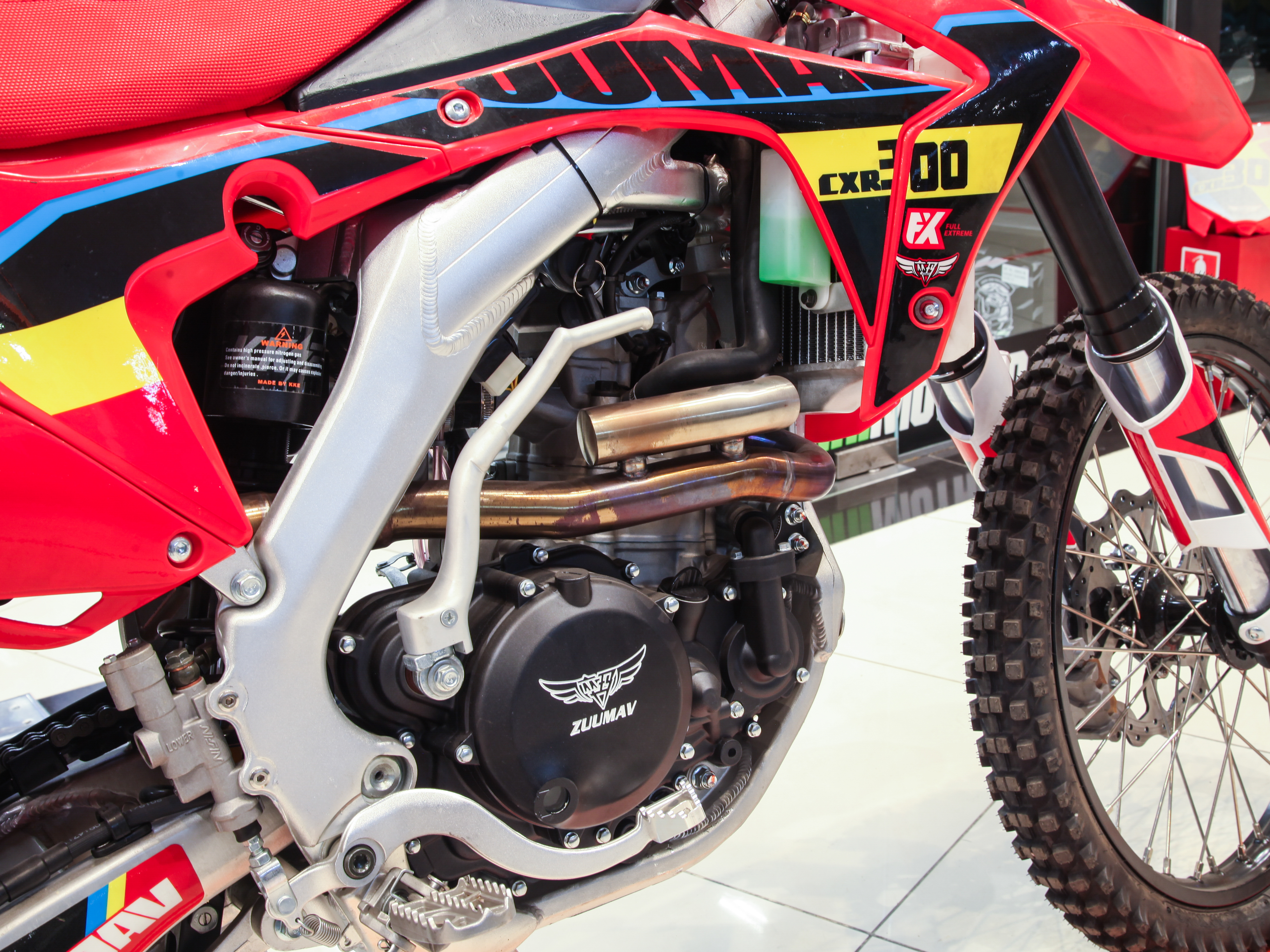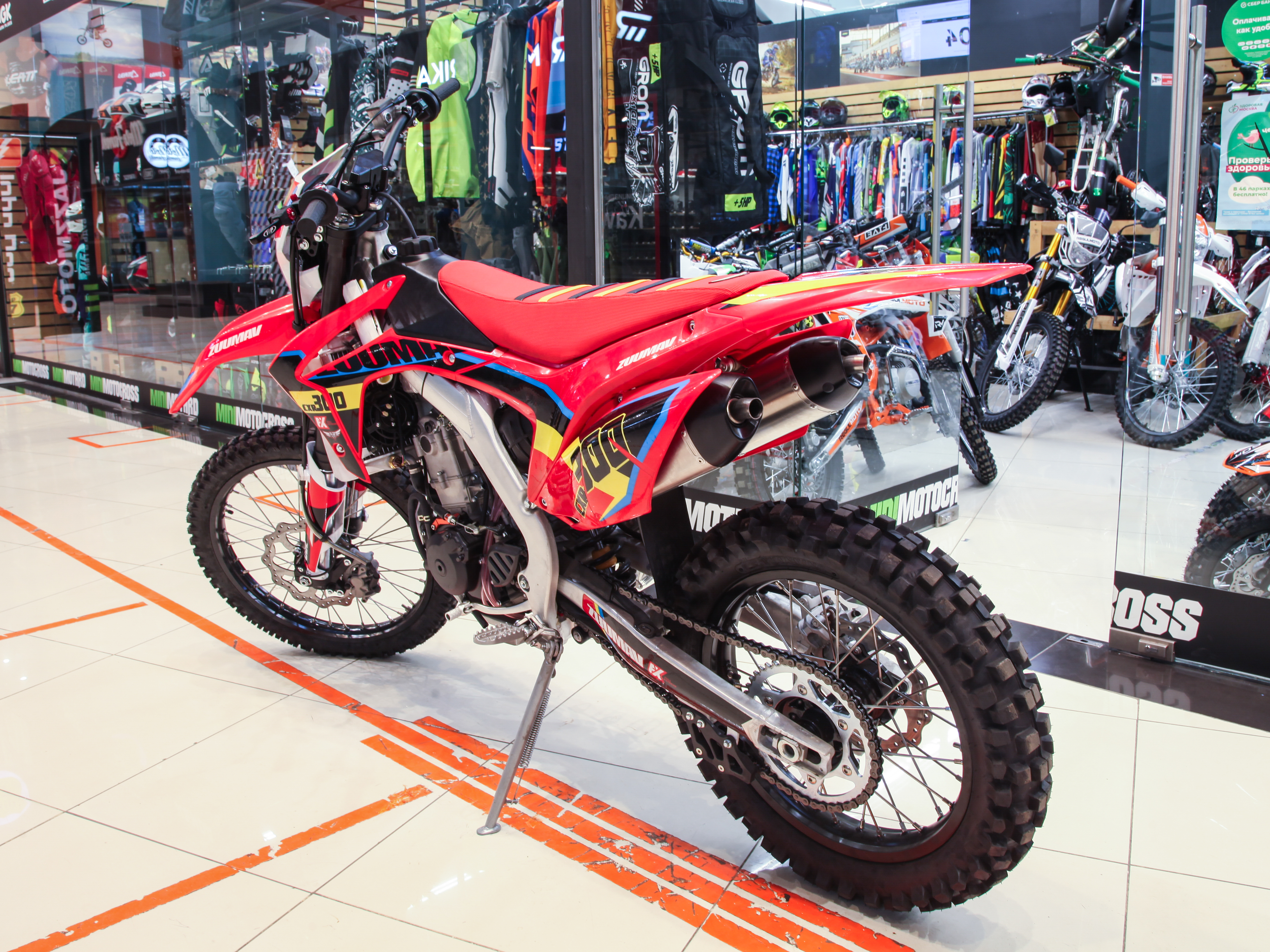 Купить ZUUMAV CXR-300 — мощный эндуро-мотоцикл с алюминиевой рамой, двигателем Zongshen с жидкостным охлаждением и спортивным карбюратором NIBBI RACING 34. Мощность 31 л.с., регулируемая подвеска KKE и задний амортизатор 480 мм обеспечивают уверенное прохождение сложных трасс.